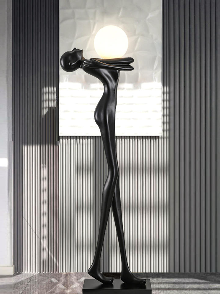 Humanoid Art Sculpture Decoration Lamp Holding Ball Mall Hotel Lobby Exhibition Hall Large Resin Floor Lamp