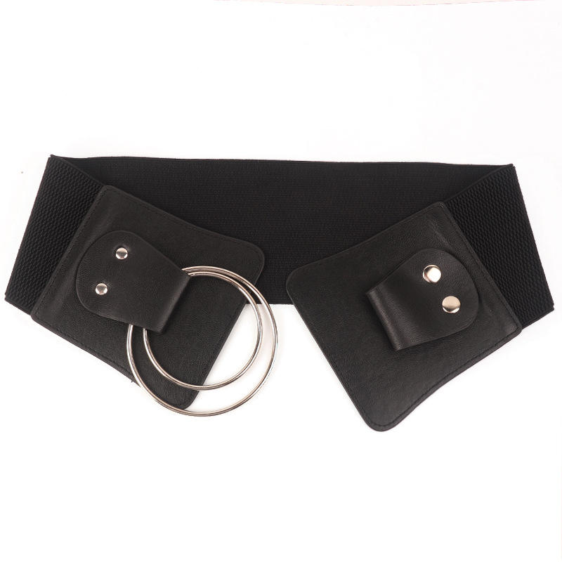 Women's Comfortable Elastic Alloy Buckle Wide Belt Simple Suit Corset with Hundreds of PU and Plastic Belts