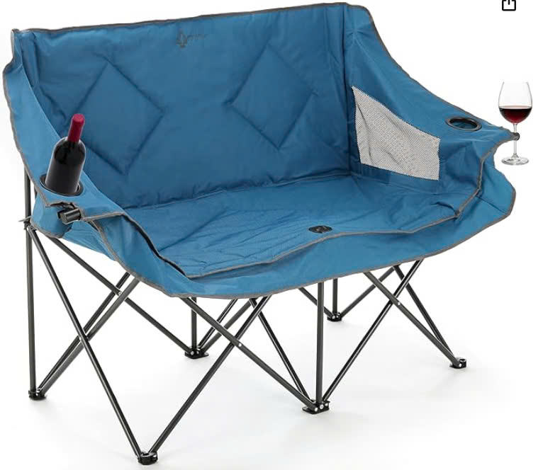 Huy Gia Modern Double-Seat Outdoor Folding Camping Chair Customizable Logo Printed Collapsible Armrests Parks Beaches Metal