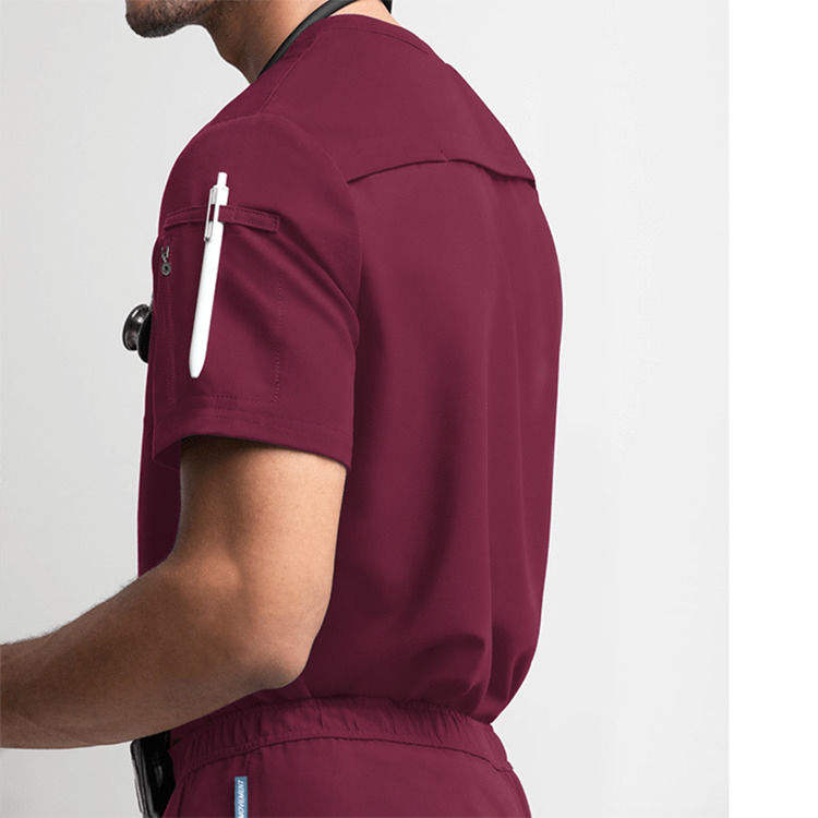 Huzaifa Burgundy Short Sleeve Medical Scrub Set for Men Doctor and Nurse Hospital Uniform