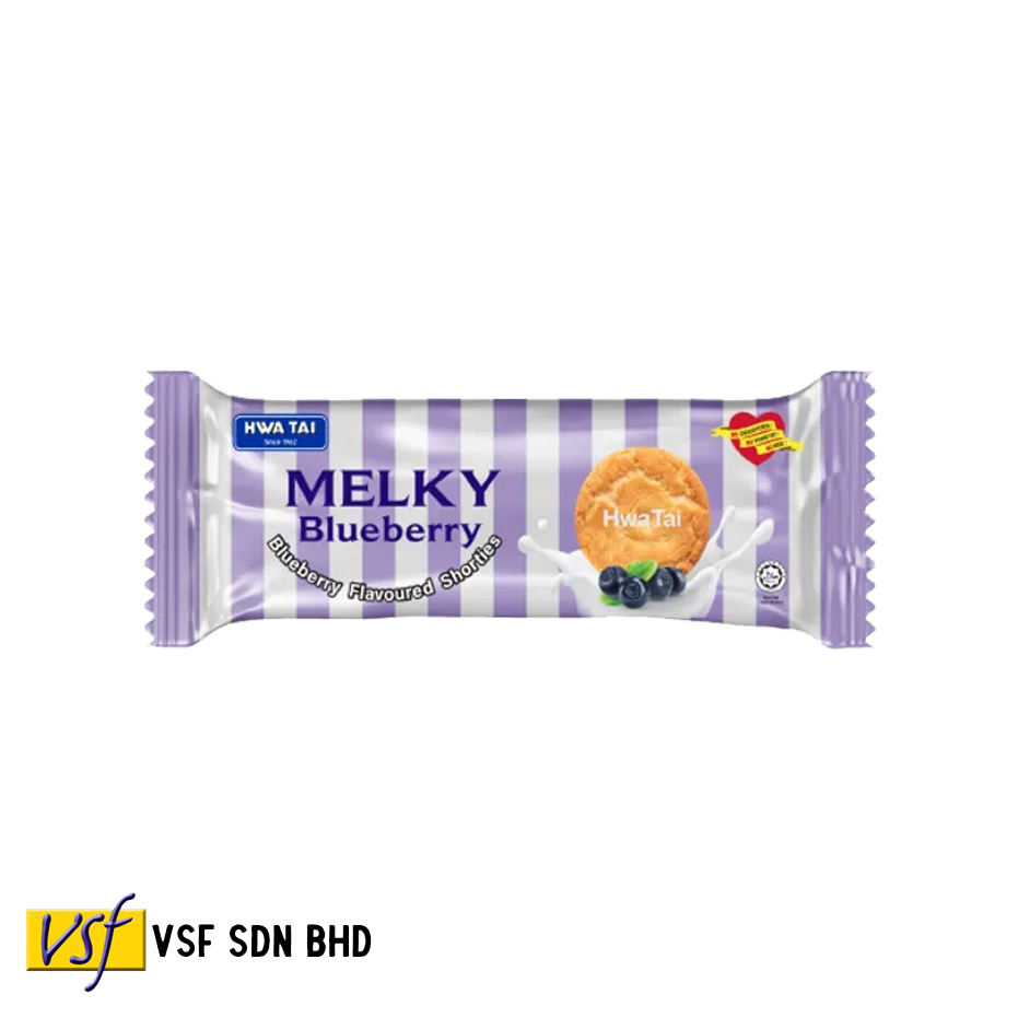 Hwa Tai Melky Blueberry 100g x 24 pkts Vitamin A B1 B2 B6 D Calcium Iron No Cholesterol No Trans Fat No MSG Malaysia Biscuits