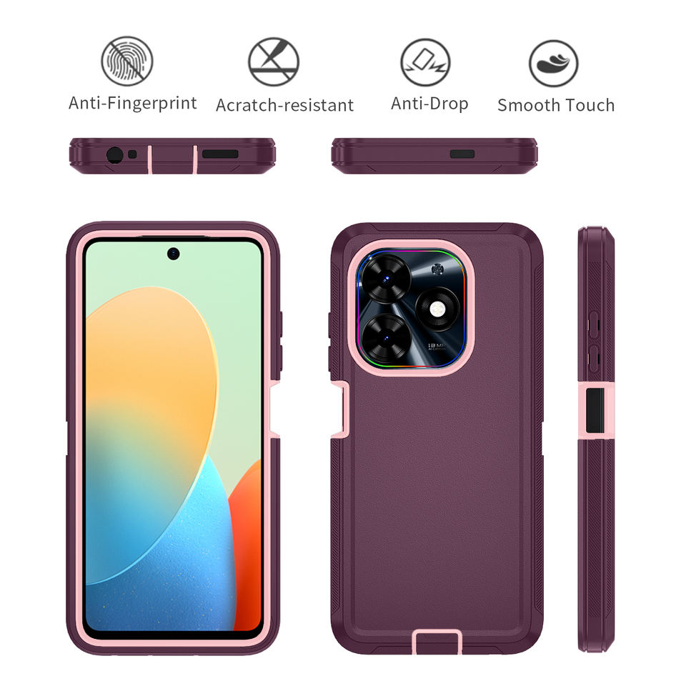Hybrid TPU PC Rugged Shockproof Phone Case for Spark 20 Pro 10C 10 Pro Plain Design With Belt Clip Holster and Stand Holder