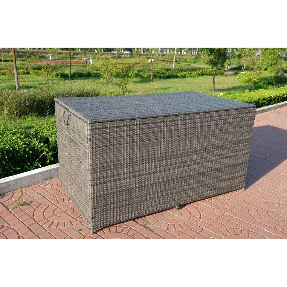 Hydraulic Lift Outdoor Grey PE Rattan Wicker Deck Box Waterproof Liner Storage with Stylish Outdoor Design