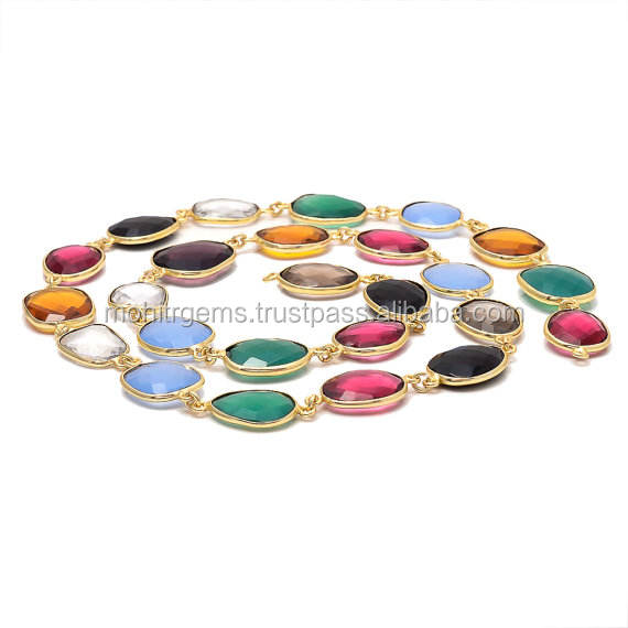 Hydro Quartz Bezel Connectors Gold Plating Beaded Chain Multi-Color Rose Cut Women Girls Wedding Party Engagement Alloy Gift