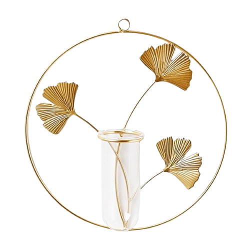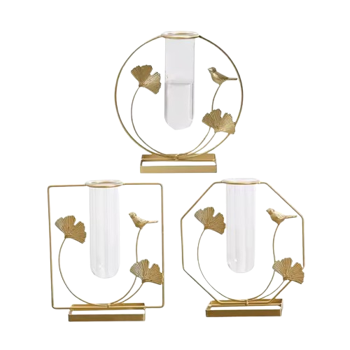 Hydroponic Glass Tube Flower Vase 2025 Leaf Design Wedding Decoration with Metal Stand Wholesale Price Luxury Iron Vase Plant
