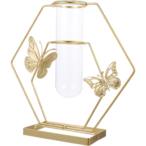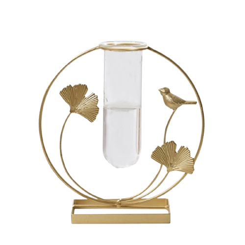 Hydroponic Glass Tube Flower Vase 2025 Leaf Design Wedding Decoration with Metal Stand Wholesale Price Luxury Iron Vase Plant