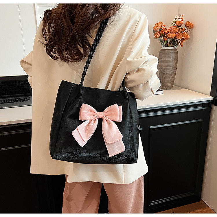 I-0147 Women's Fashion Reusable Canvas Tote Bags Cotton Handles Custom Logo Printed Multiple Pocket Shopping Gift Shoulder Bags