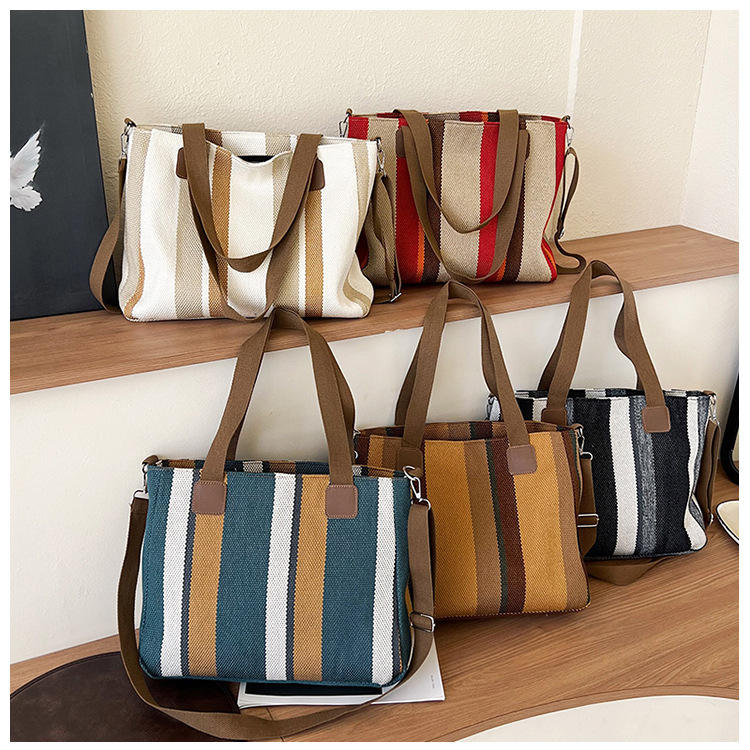 I-0159 Wholesale New Fashion Striped Canvas Crossbody Bag Women Handheld Tote Shoulder Bag