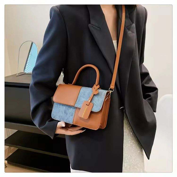 I-0302 Wholesale Fashion PU Leather Ladies Handbags Square Underarm Crossbody Bag Pure Color Block Splice Shoulder Bags
