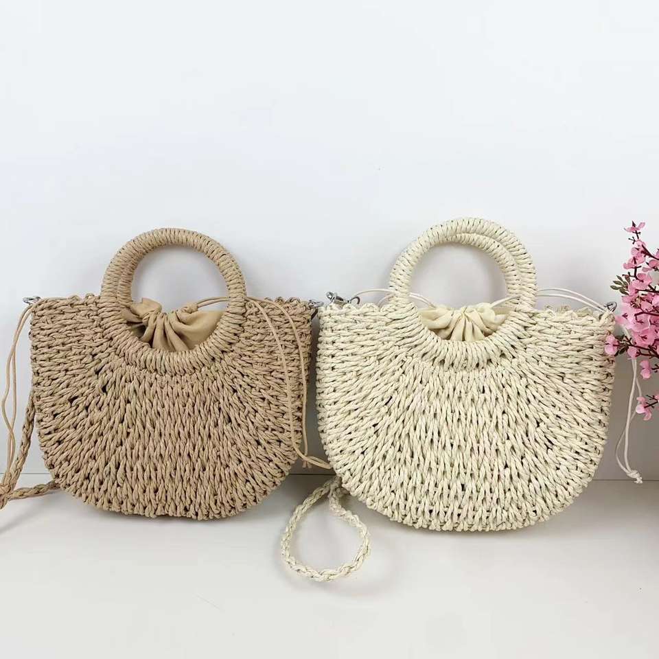I-0305 New Wholesale Eco-Friendly Mini Semi-circle Straw Beach Bags Women Handbags Summer Shopping Beach Shoulder Bag