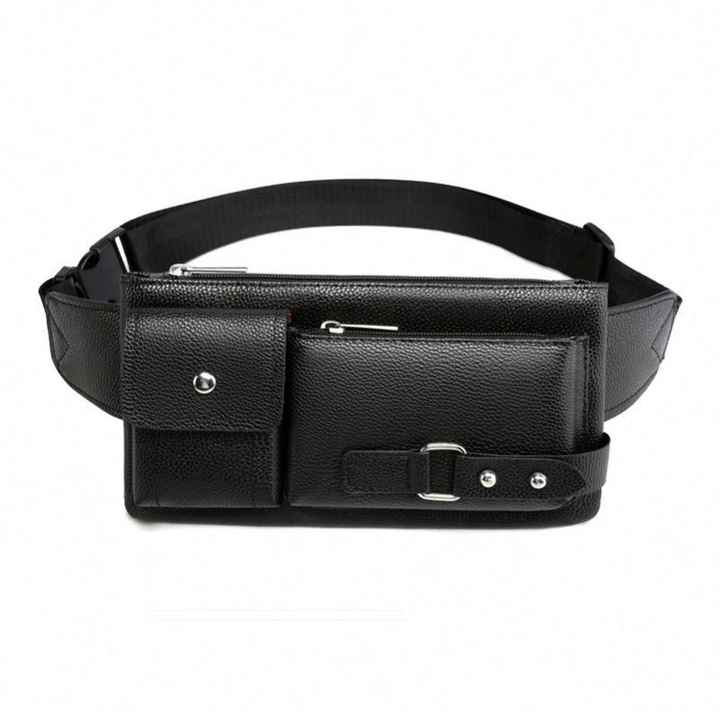 I-0326 Hot Sale Customized Logo Black PU Leather Fashion Unisex Multifunctional Waterproof Summer Spring Waist Bag