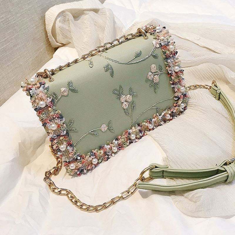 I-0390 Girls Summer Fashion Handbag Elegant Flower Embroidery Handbags PU Mini Chain Crossbody Bag for Women