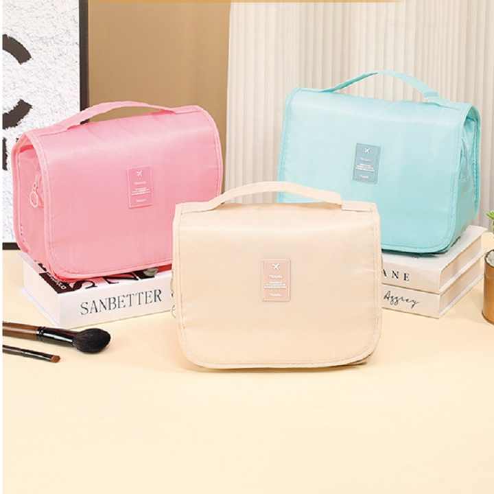 I-0403 Large Capacity Travel Essential Cosmetic Portable Makeup Bag with Hanging Hook for Women Waterproof Nylon Toiletry Bag