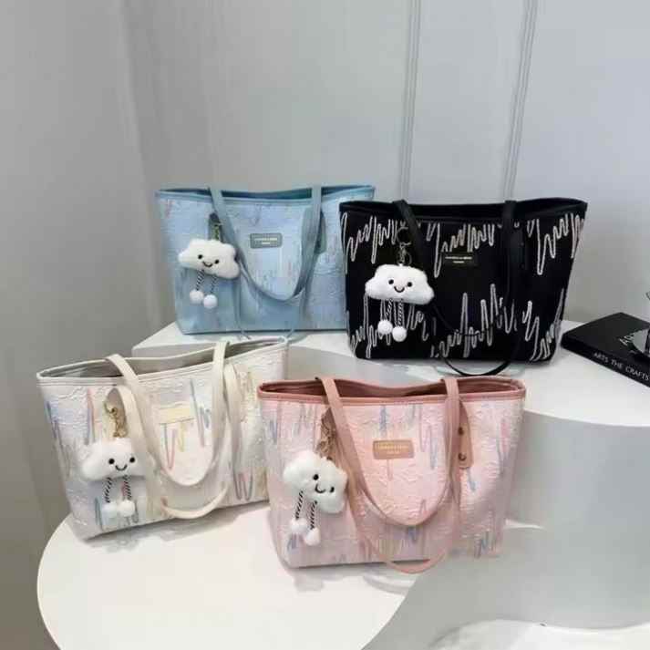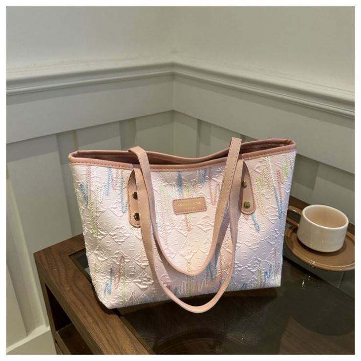 I-0448 New Large Canvas Tote Bags for Woman Kawaii Cute Woman's Handbags Fashion Rain Bow Color Bags for Commuting