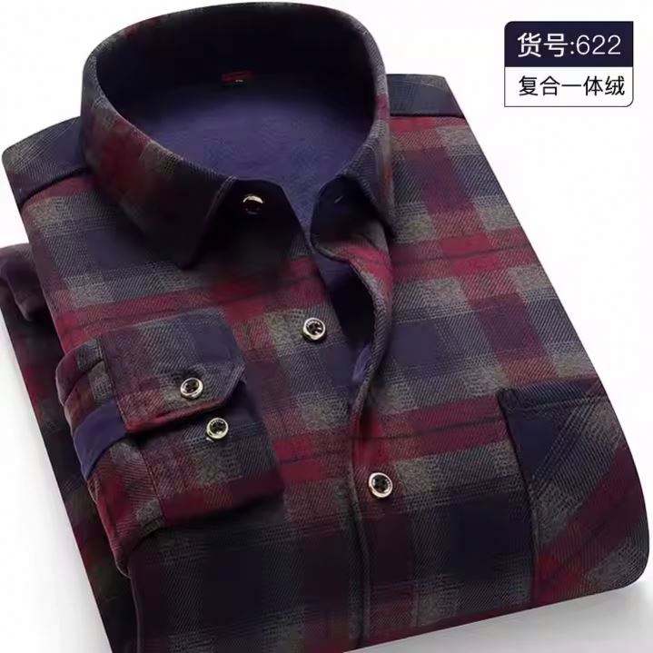 I-0475 Men Autumn Fleece Warm Shirts Long Sleeve Solid Stand Collar Button Wholesale Casual Shirt