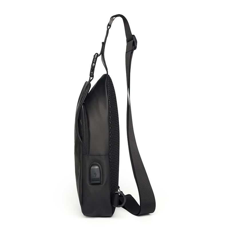 I-0484 New Men's PU Chest Bag With USB Large Capacity Single Shoulder Bag Crossbody Fashionable Simple Outdoor Design Bag