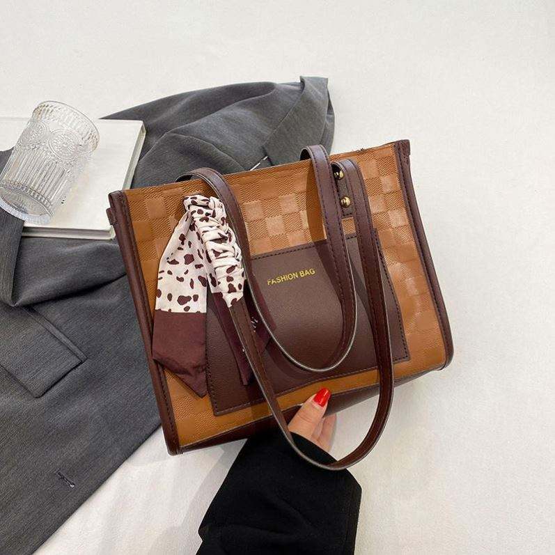 I-0536 Hot Selling Handbags Factory Wholesale Woman Large Capacity Tote Bag with Silk Ribbon Fashion College Student Book Bag