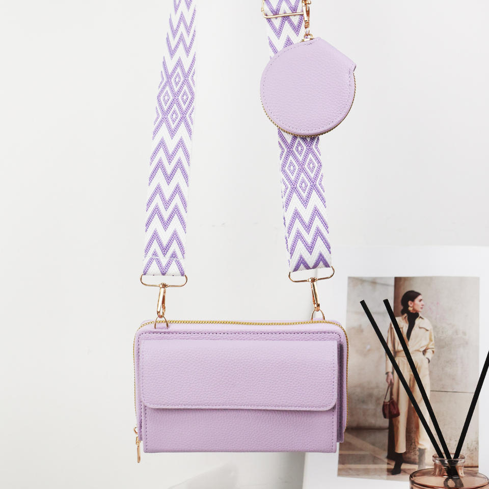 I-0570 Women's Fashion Cross Body Handbag Summer Winter Multi-Functional Mobile Phone Bag Wide Shoulder Straps Small Coin