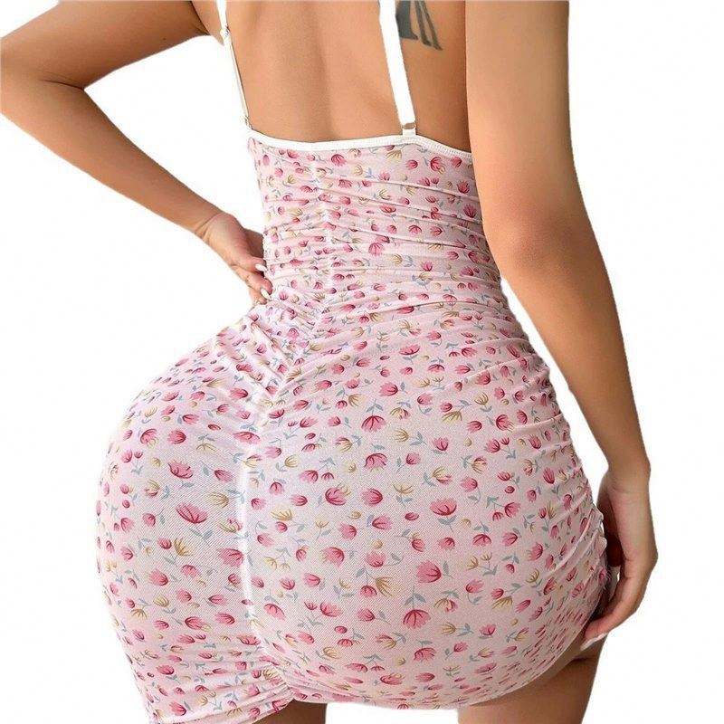 I-0584 Factory Sexy Night Wear Sexy Mesh See Through Women Suspender Pajamas Dress Eyelash Lace Underwear Women Sexy Sleepwear