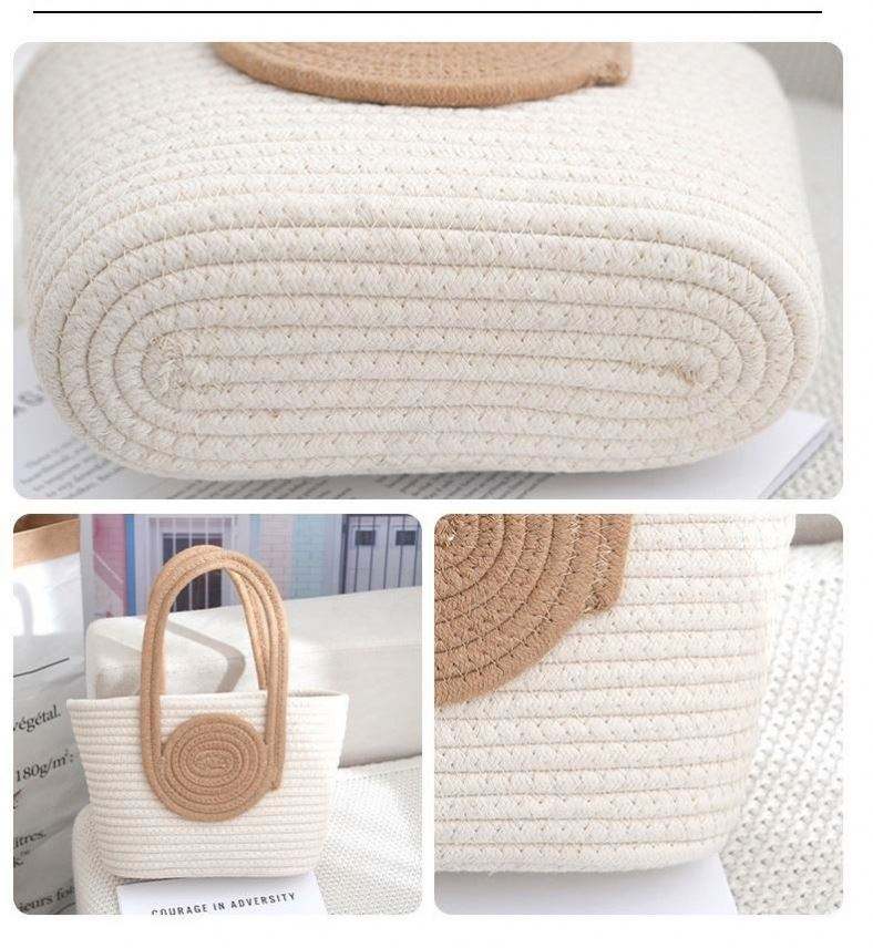 I-0596 New Arrival Fashion Color Blocked Woven Handbags Women Cotton Rope Single Zip Beach Tote Bag