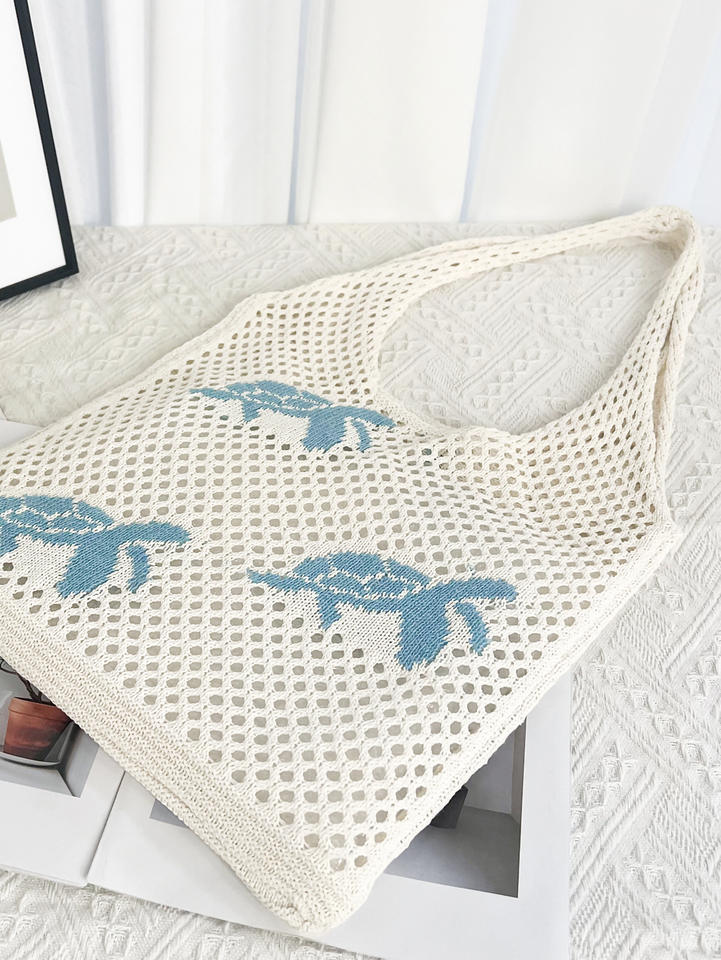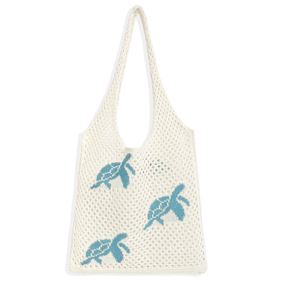 I-0728 Summer New Style Lady Daily Use Lightweight Tote Bags Sea Turtle Pattern Hollowed Out Knitted Crochet Beach Shopping Bags