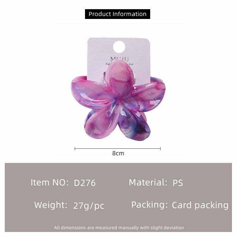 I-0756 New 8cm Chroma Flower Claw Hair Clip Women's Premium Sense with Card Plastic Hair Accessory