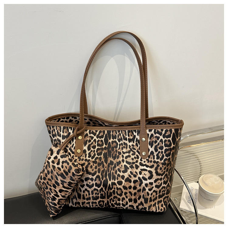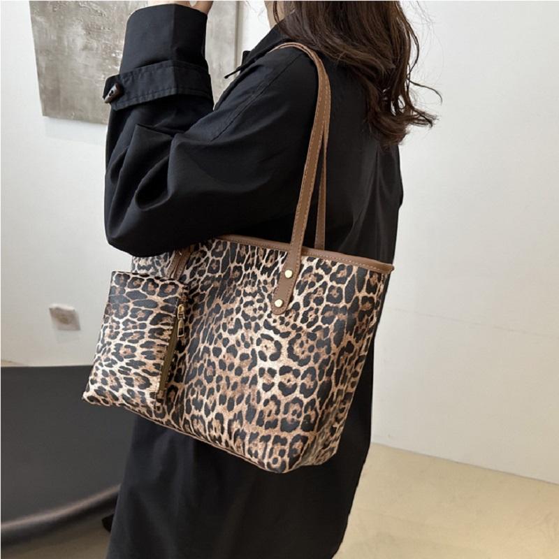 I-0794 New Arrival Handbags Fashion Leopard Print Large Capacity Tote Bag with Pocket Purse 2pcs Set Bag