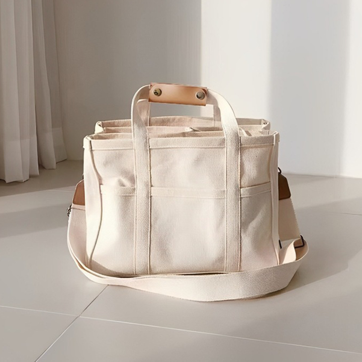 I-0830 Large Capacity Multifunctional Canvas Tote Bag Casual Eco-Friendly Design Multi-pocket Crossbody Bag Handbag
