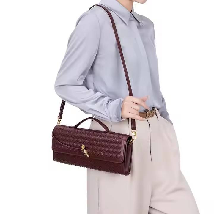 I-0952 Lock Woven Trendy Woven Evening Clutch Purses Women Underarm Shoulder Bags Handbag Crossbody Bag
