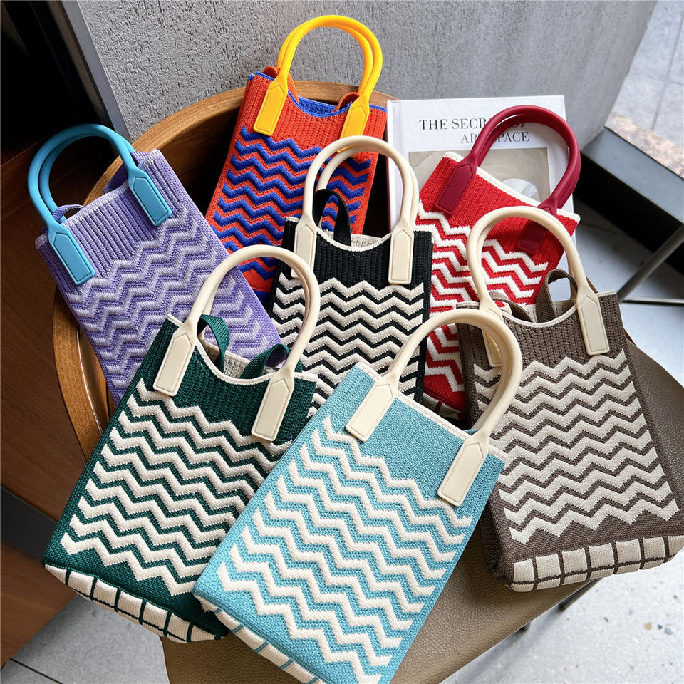 I-1057 New Trendy Simple Design Girls Checked Crochet Phone Bag Women Knitted Satchel Purse Mini Fashion Crossbody Tote Bags