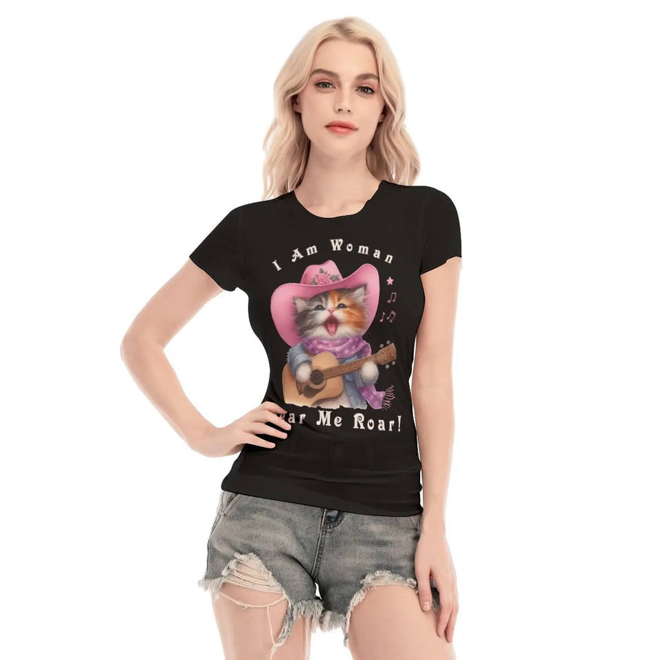 I Am Woman Cat-Themed Mesh T-Shirt