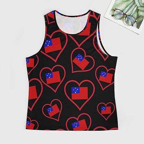 I Love Samoan Red-Heart Men's Muscle Tank Top Sleeveless Workout Tank Shirts Gym Fitness Tees Vest