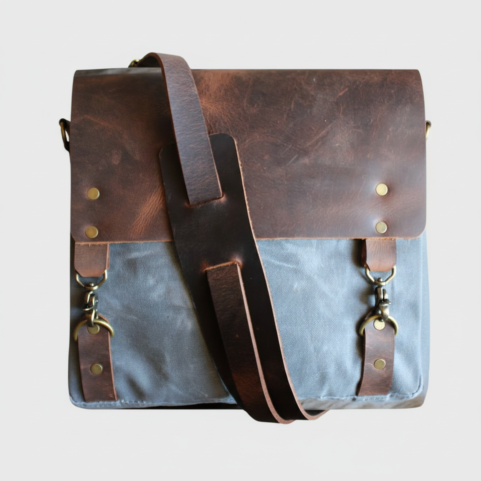 IB-0088 Leather Crossbody Waxed Canvas Laptop Messenger Bag for Men & Women Women's Tote Bag