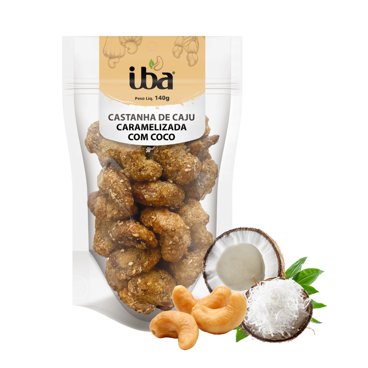 IBA Brazilian Caramelized Cashew with Coconut Chunks - Premium Roasted Cashew Snack Sweet Crunchy Tropical Flavor from Brazil
