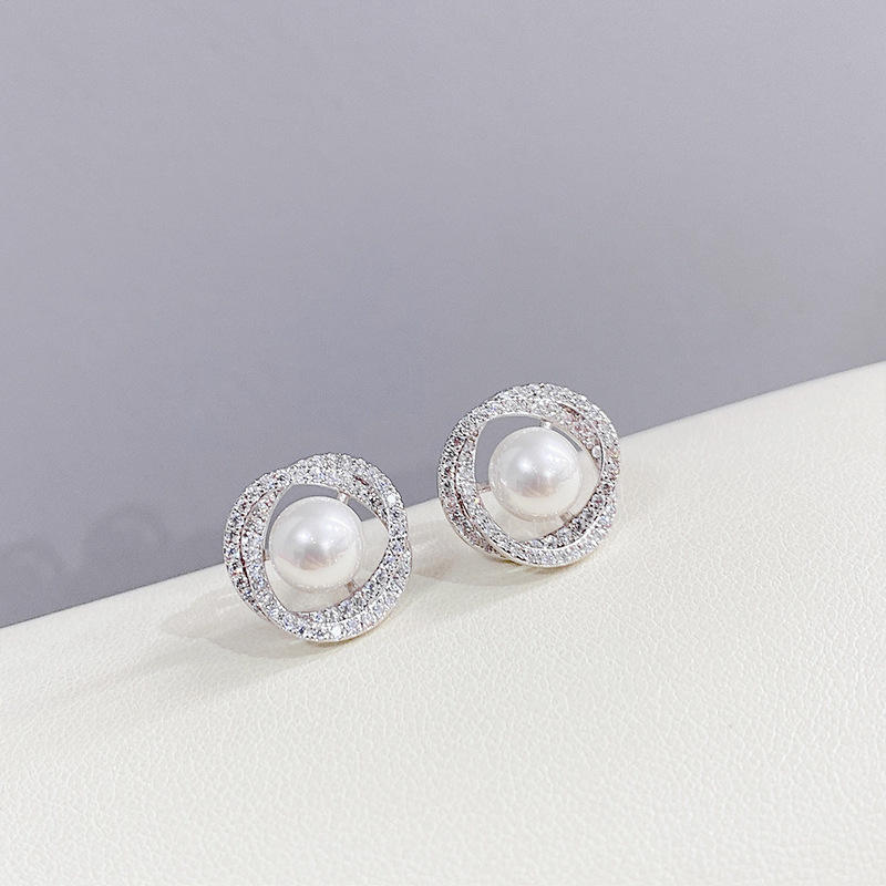 IC5-J Vintage Silver Crystal Heart-Shaped Hoops Everyday Trendy Women's Earrings Alloy & Pearl for Gift Zinc Alloy