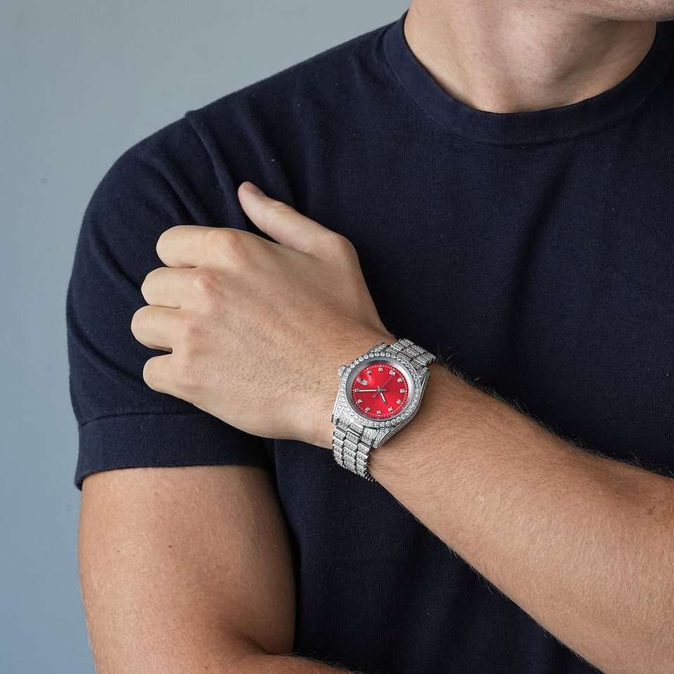 ICECARTEL 41MM 13.3CT Presidential Luxury Moissanite Watch Red Face Square Case Men's 14K White Gold Quartz Analog Iced