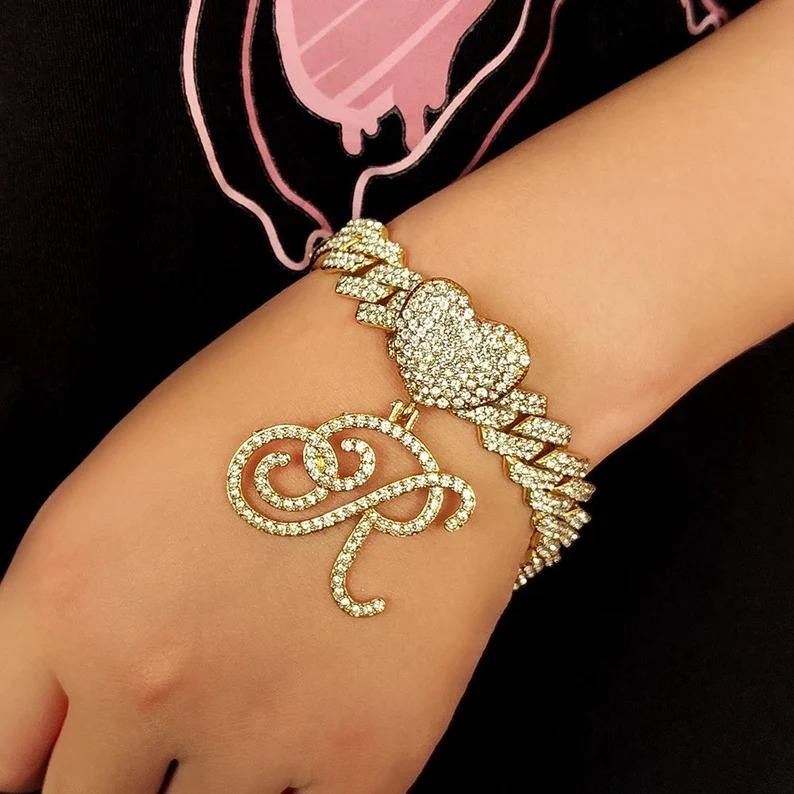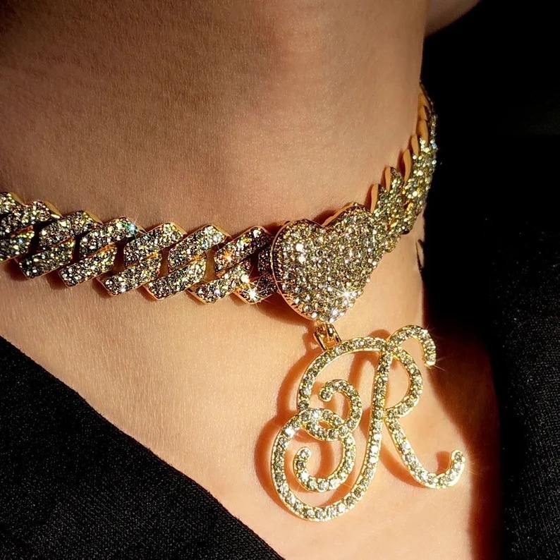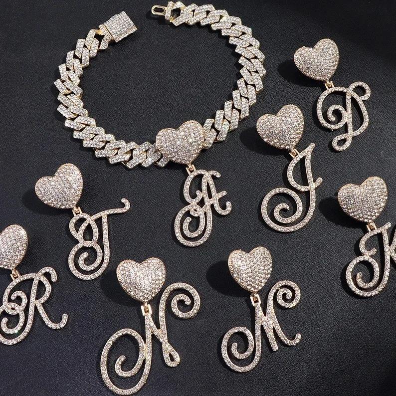 ICED Out Moissanite Personalized A-Z Cursive Initial Letter Pendant with Cuban Link Chain Set Gold White Gold Jewelry for Gift