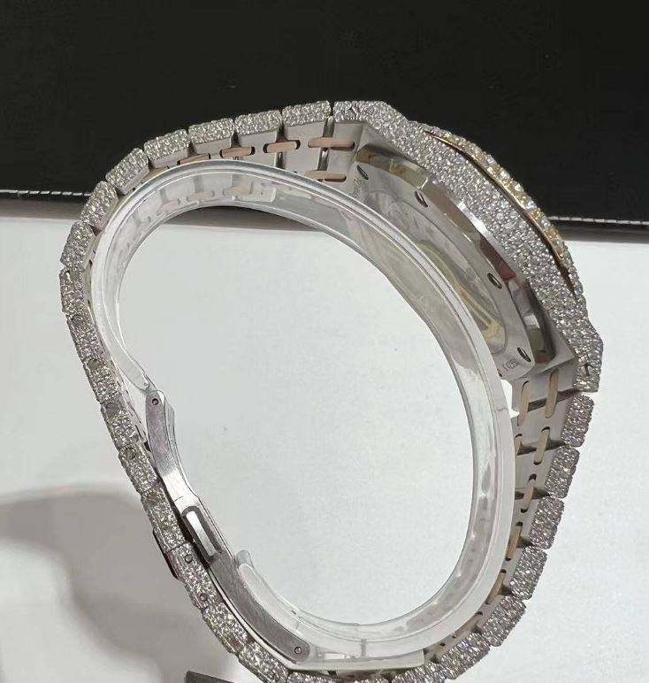 ICED Out WATCHES Moissanite Two-Tone Rose Gold Rainbow Stainless Steel Unisex Watch 30bar Water Resistant