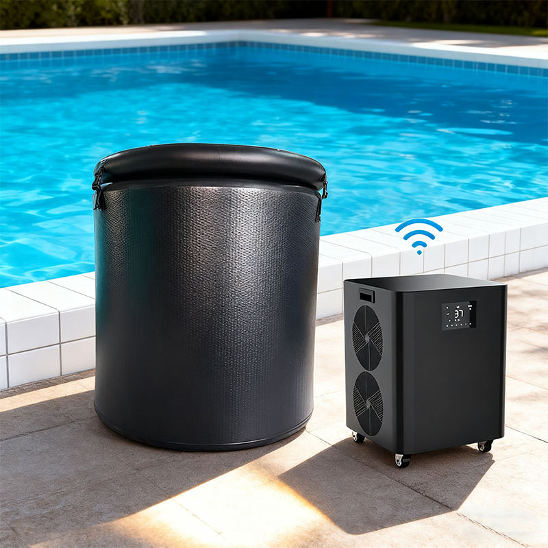 ICEMEND Customized Drainage Insulated Black Cylindrical Ultimate Cold Plunge Tub with Chiller Inflatable Ice Bath Tub With Cover