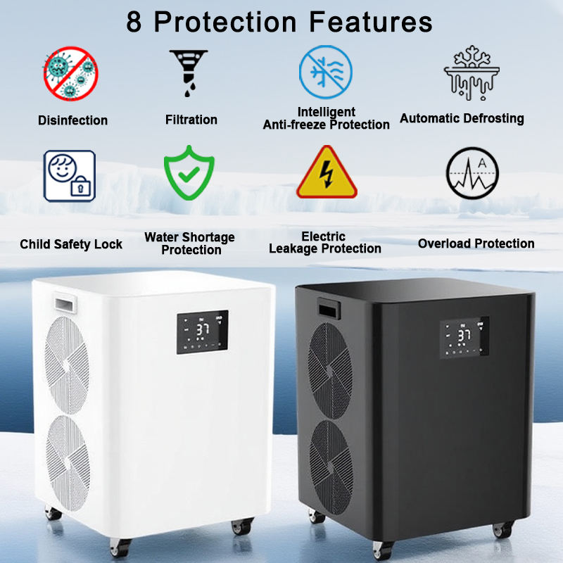 core components:Condenser, Evaporator, Fans, Water Pump, Filter, UV-C Sterilizer, Compressor