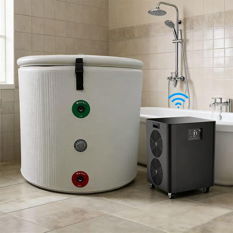 ICEMEND Portable Cold Plunge Barrel Ice Pod with Dual Cold and Hot Water Chiller Inflatable Ice Bath Tub 1hp Chiller Machine