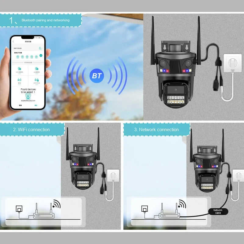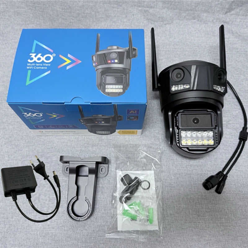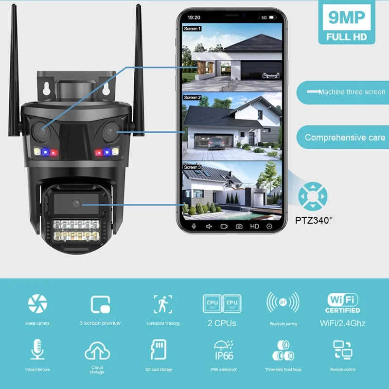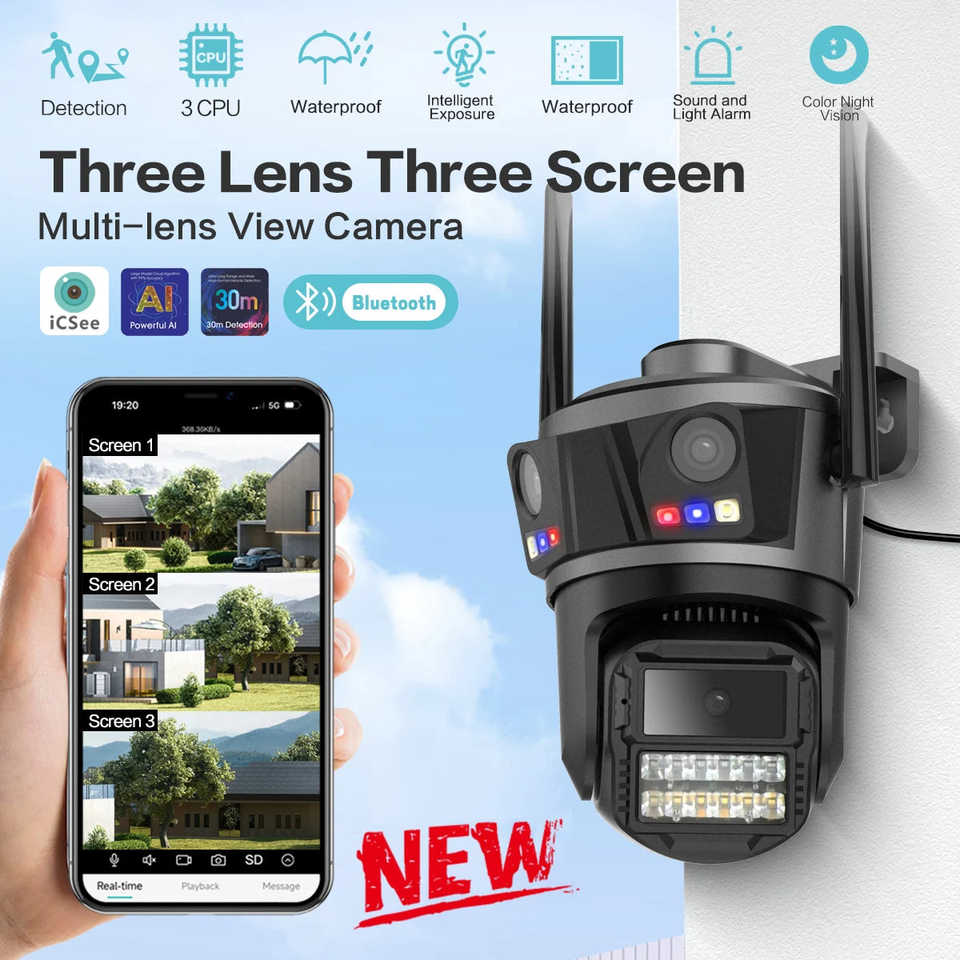ICSEE 5K Ultra-Clear 9MP Three-Lens Wireless WiFi Security Camera Waterproof Outdoor Home PTZ CCTV Remote Monitor Network