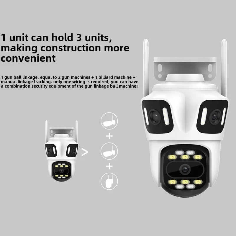 ICSEE 8MP Wireless WiFi Network Camera Three-Lens Three-Picture Night Vision HD Remote Monitoring for Home and Outdoor Use