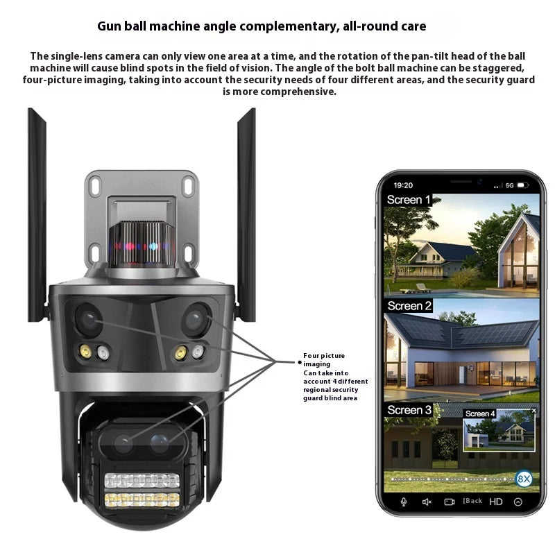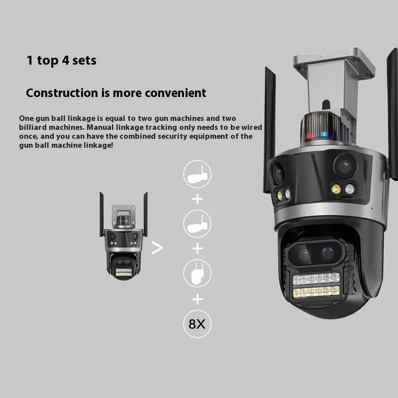 ICSEE 8x Zoom Wireless HD 4K 6K Network Camera 4-Lens 12MP PTZ Intelligent Night Vision Remote WiFi for Home & Outdoor Use