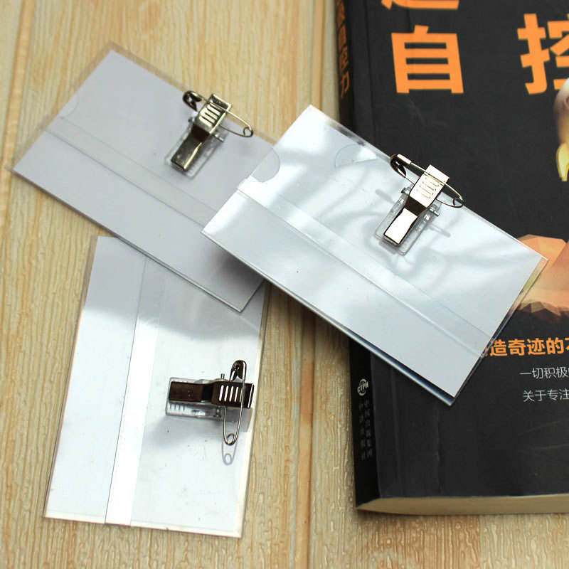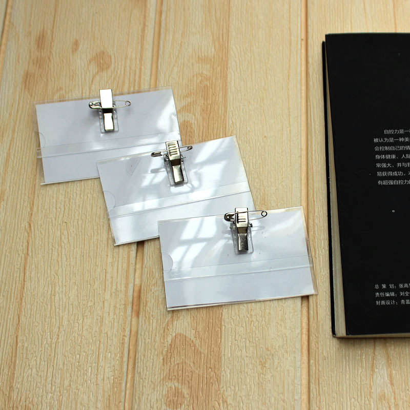 ID Card Hookei 100% High Quality Clear PVC Plastic Horizontal Name Tag Badge Holders With Safety Pins and Crocodile Clips