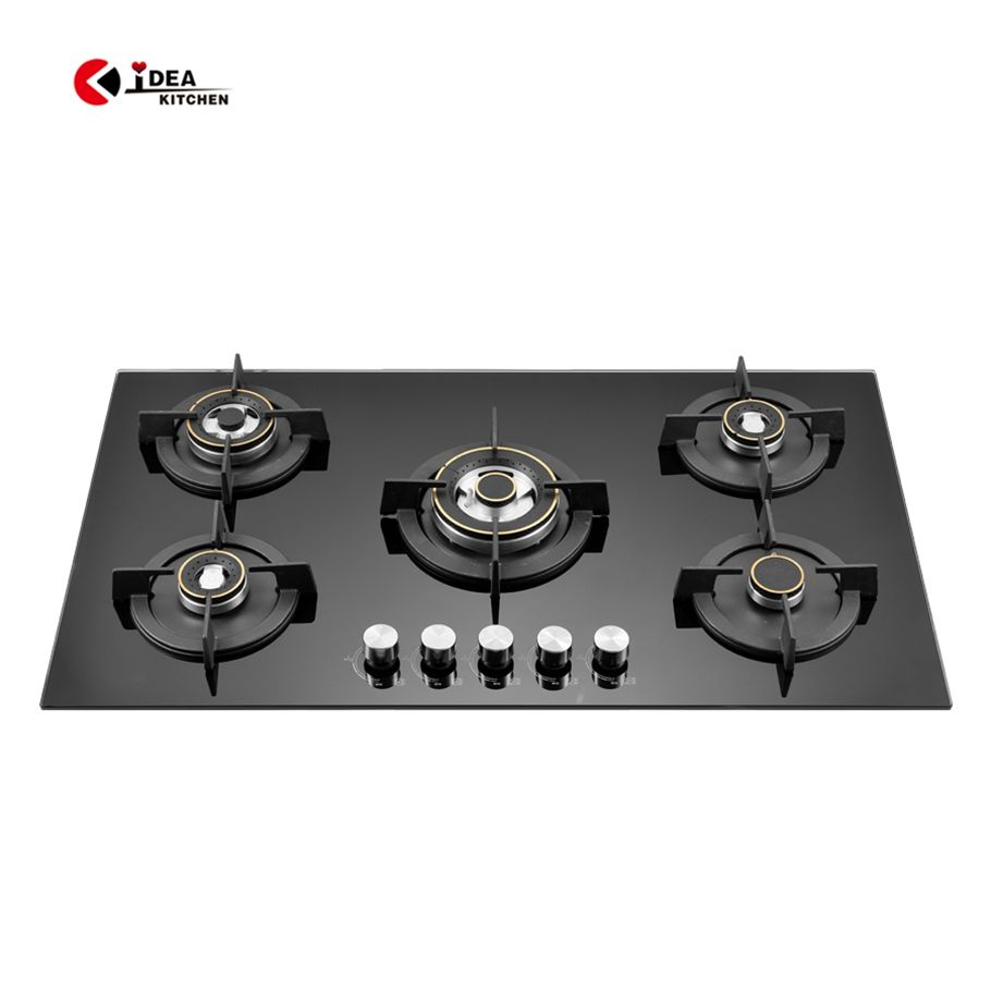 IDEA Kitchen Appliances Built in Gas Hob Iraq Market Copper Cover Black Glass Gas Stove Cooktops 5 Burner Gas Cooker