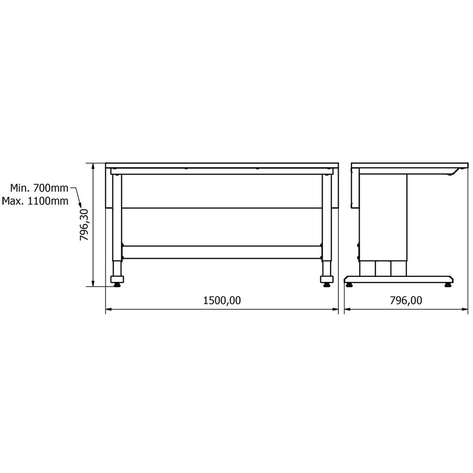 IE.36.11.15.14 Assembly Desk 1.5 Metre Durable Metal Workbench Electrician Height Adjustable W1500xD750mm Electrician Durable