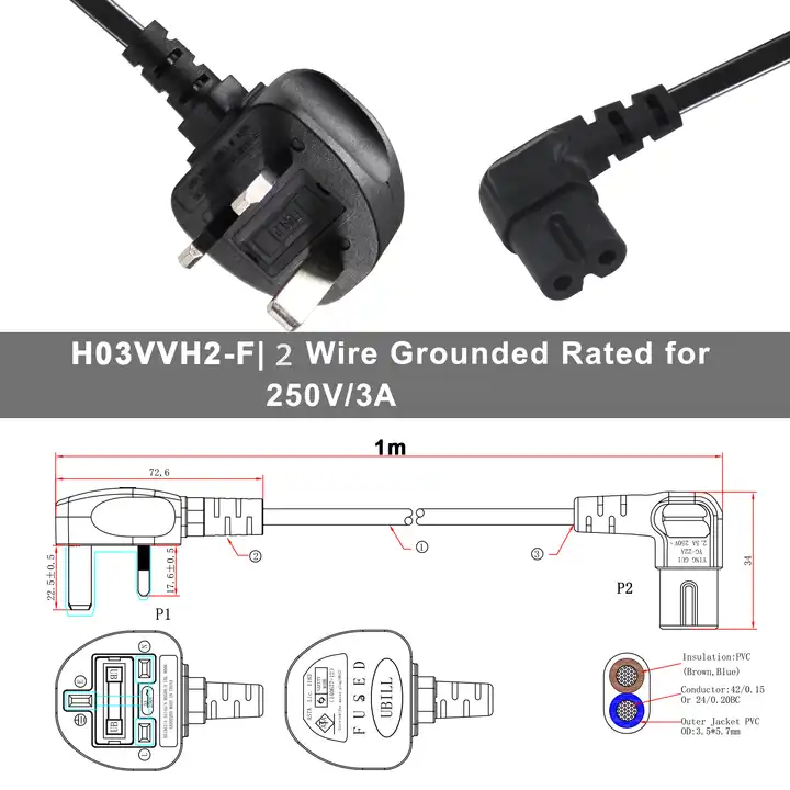 IEC320 Right Angled C7 Camping Extension Cord Household Cords TV Power Lead