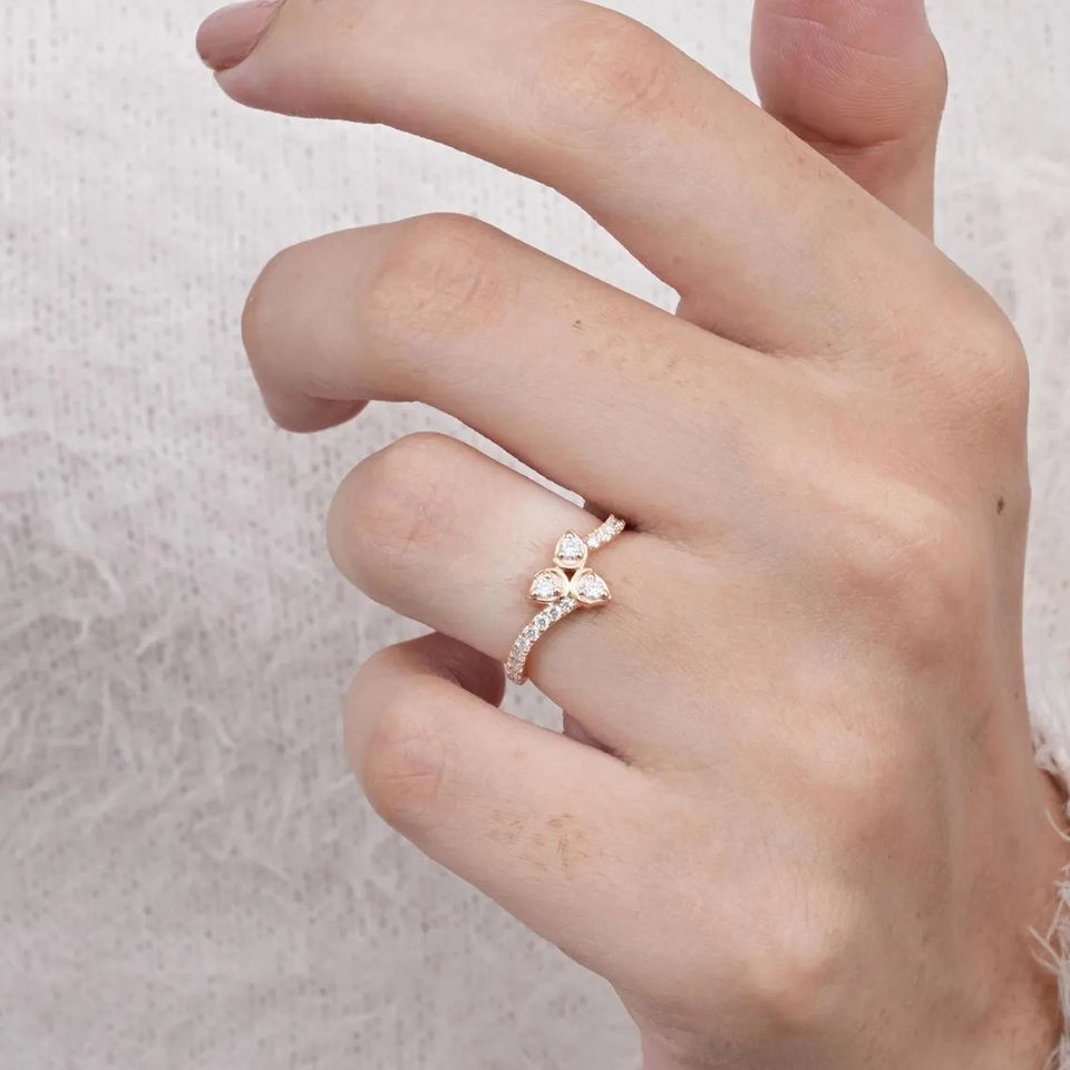 Product name:10K Solid Gold Three Flower Design Bypass Engagement Ring