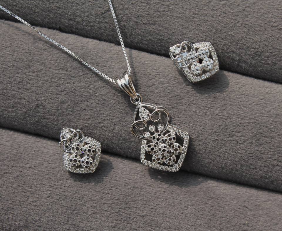 IGI Certified 18K White Gold Natural Diamond Loop Pendant Earring Set Elegant Bridal Jewelry Trendy Same Day Ship